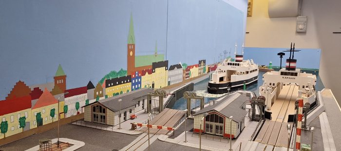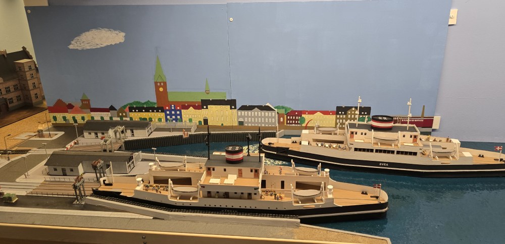 ![]() Færgehavnen i Helsingør er blandt de nyeste byggerier på anlægget. Foto: Henning Hansen Besøg os den 2. decemberKlubben holder åbent hus tirsdag den 2. december, og alle er velkomne til at besøge os og se vor modelbane i Kulturhuset i Farum mellem 16 og 20. Dagen er Modeljernbanens Dag, som arrangeres af den europæiske modelbaneorganisation MOROP, og der er arrangementer i alle medlemslandene Her i Farum vil der blive kørsel på klubbens store anlæg, hvor den hedengangne Kjøbenhavn -Slangerup - Bane er lavet i model. KSB gik, som navnet angiver, fra København til Slangerup, men i 1954 blev strækningen til Slangerup nedlagt og navnet ændret til Hareskovbanen med endestation i Farum. DSB havde overtaget den privat/kommunalt drevne bane d. 1. april 1948. Vi har bygget stationerne København L, Emdrup, Hareskov, Farum, Vassingerød og Slangerup. Bygningerne er tro kopier af de oprindelige; lavet efter originale tegninger og i bl.a. Farum er Williams Hotel, Fiskebæk Hotel, Skovløberhuset ved Fiskebæk og husene omkring overskæringen på Farum Hovedgade også bygget. Desuden er der en dobbeltsporet DSB-strækning som er næsten færdigbygget, med bl.a. Helsingør med færgelejer og to færger, by med sporvogne, Hellerup station og meget mere. Klubbens medlemmer vil fortælle om KSB ´s historie, modeljernbaner og det om at være medlem af en klub, som i vores tilfælde også søger at bevare så meget af KSBs historie som muligt. Både i form af billeder, men også arkivalier som Lokomotivtegninger, tilbud fra Tyskland, USA og det danske firma, Scandia, alle papirer er dateret mellem 1904 - 1906 og meget andet vedrørende både KSB, og den efterfølgende DSB tid. Vi holder til i kælderen under Kulturhus Farum, Stavnsholtvej 3, 3520 Farum. Der vil være skiltning der viser vej fra Informationsskranken til kælderen.