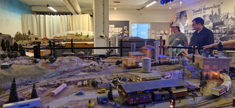 ![]() Det ene anlæg er skabt af den danske læge Bent Schultze, som boede og arbejdede i Ljungby. Lokale ildsjæle reddede det med nød og næppe fra at gå til grunde. Skovtur til landet SomewhereVi havde en fantastisk tur til det for mange ukendte land Somewhere, som viste sig at ligge skjult i en gammel fabriksbygning i den svenske by Ljungby.Vi så to flotte modelbaner og en udsøgt samling af legetøj og andet godt. Mere: Nyt i klubben ![]() Vægmaleriet af husene i Strandgade skaber endnu mere realisme på Helsingør Havn. Ferien er forbiByggeriet er startet igen både i Helsingør og i Farum. Mere: Nyt i klubben![]() Henning, Finn og Morten nyder de nye tider i læsesalen i tjenestekupeen. Der er sågar blevet ryddet op på bordet. Foto: Hans-Henrik Landsvig Så kom der styr på bøger og arkivEfter beslutningen på generalforsamlingen har Jesper og Hans-Henrik i nogle måneder arbejdet med at rydde op i klubbens samling af bøger og arkivalier.Opgaven viste sig større end ventet, men nu er bøger om modelbaner samlet i rummet foran indgangen til anlægget. Andre bøger og tidsskrifter er sorteret og anbragt på hylderne i rummet bag tjenestekupeen. For at undgå, at alt igen sander til i roderi, er der udarbejdet regler for arkivets brug, og arkivarerne/bibliotekarerne beder om, at ny bidrag til samlingen anbringes i bakken med teksten: Ny ting til arkivering. Så tager Jesper og Hans-Henrik sig af dem og anbringer dem på rette sted, så vi alle kan finde dem igen. Bakken står på skabet ved siden af toilettet. Mere: Nyt i klubben Helsingør tager form